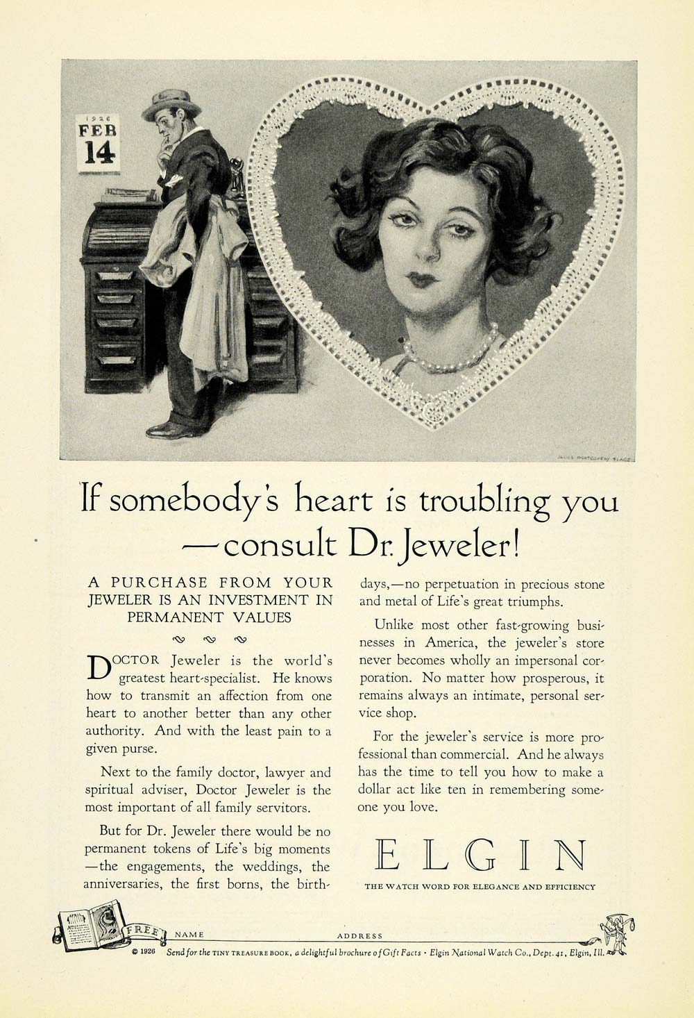 1926 Ad San Valentine Feb 15 Sweetheart Gift Elgin National Watch Co NGM1
