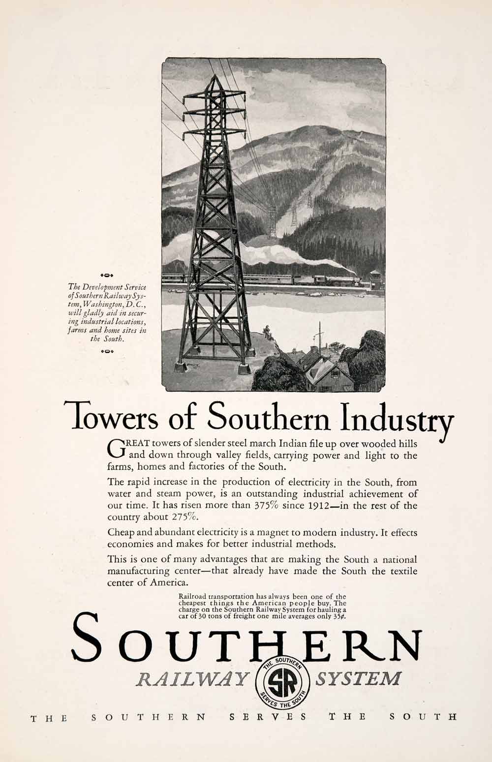 This is an original 1926 black and white print ad for the Southern Railway System.