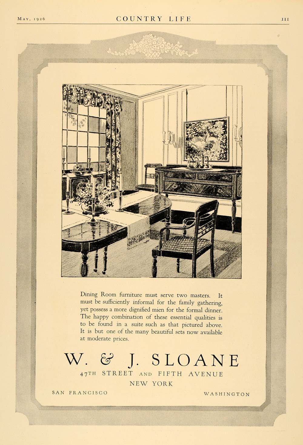 This is an original 1926 black and white print ad promoting furniture and interior decoration from W. & J. Sloane Company located at 47th Street and Fifth Avenue. This company was founded by William Sloane and were the first to import oriental carpet into the United States, especially in New York.