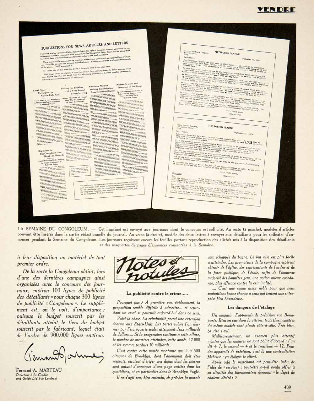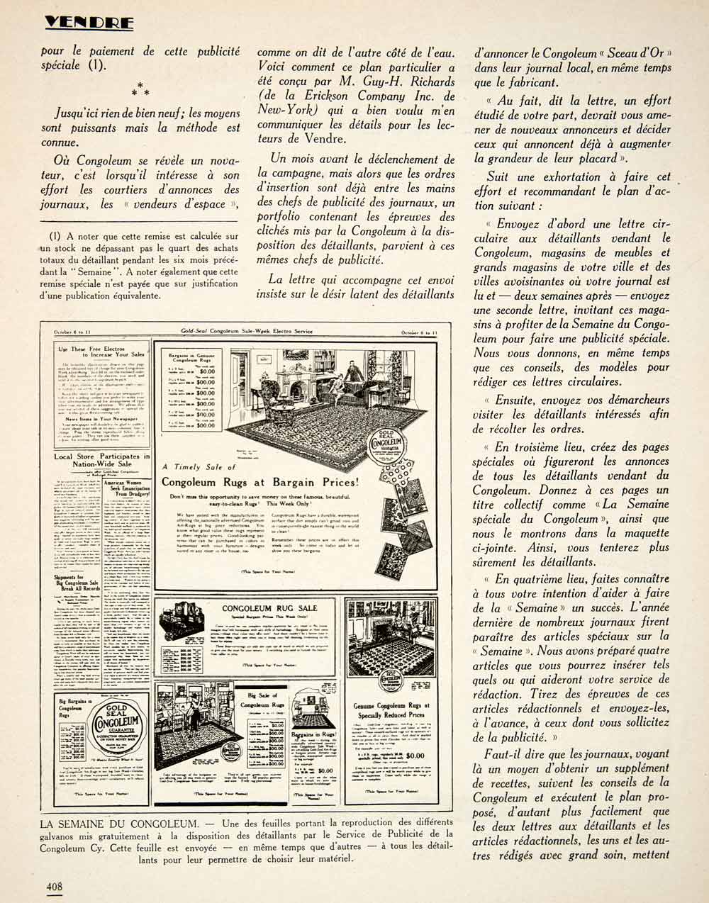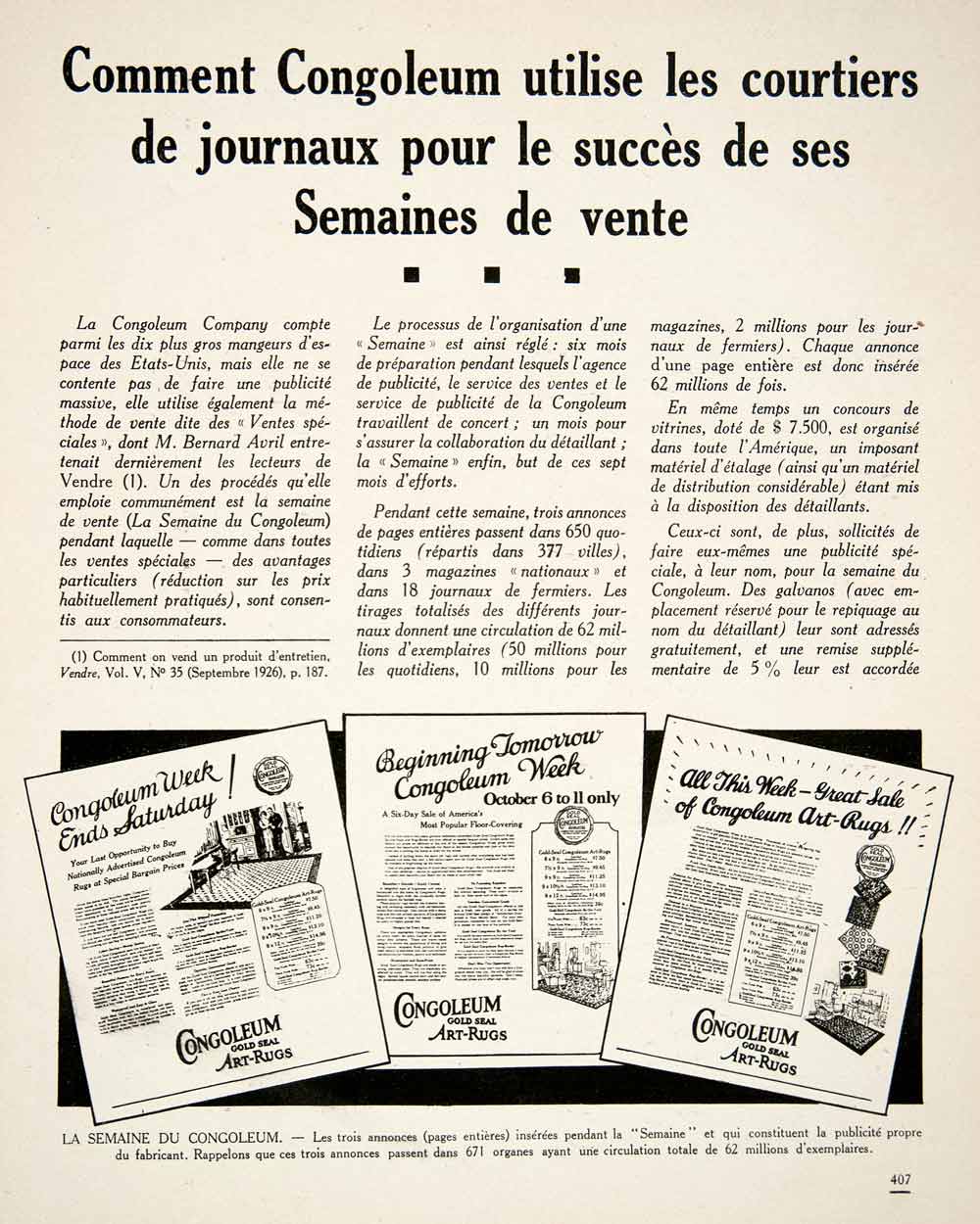 Comment Congoleum utilise les courtiers de journaux pour le succes de ses Semaines de vente" ("How Congoleum uses newspaper vendors to their advantage during sales weeks").
