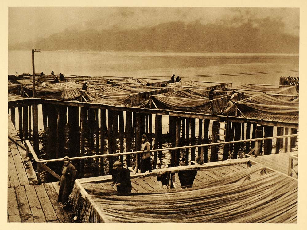 1926 Canadian Indians Drying Fishing Nets BC Canada - ORIGINAL PHOTOGRAVURE CAN2
