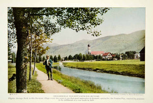 This is an original 1926 color print of the Bavarian town of Oberammergau, found on the southern boarder of Germany.