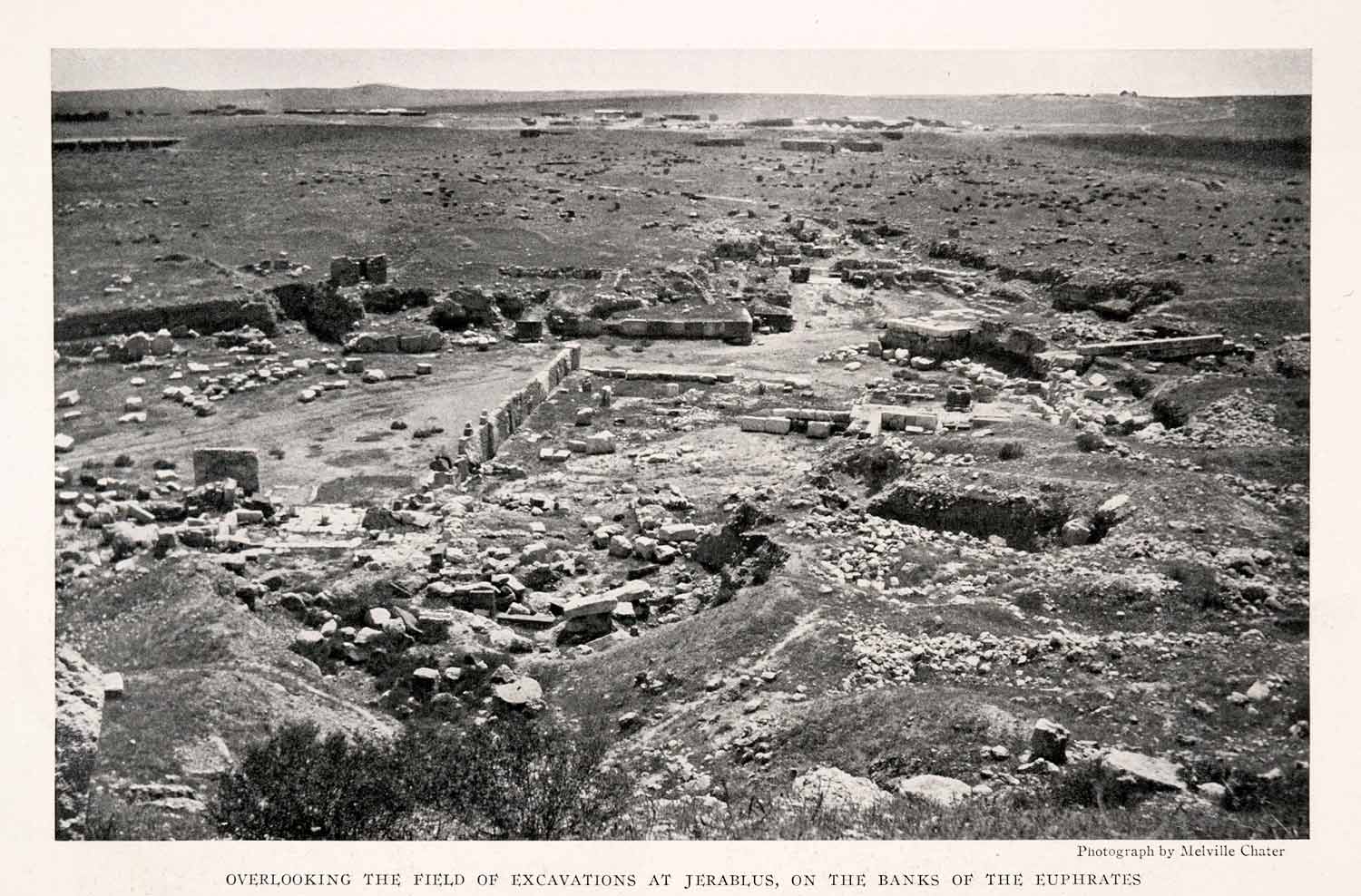 This is an original 1926 black and white halftone print of the archaeological excavations at the ancient city of Jarabulus in Syria. The ancient people who once resided here were known as the Hittites and lived during biblical times. Photography courtesy of Melville Chater.