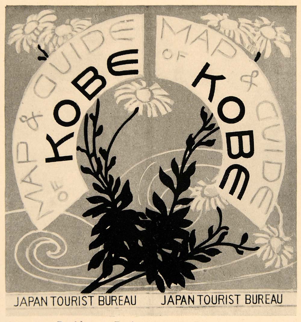 This is an original 1926 halftone print of a design for a booklet of a map and guide to Kobe, Japan. Advertiser: Japan Tourist Bureau. (Please note that there is printing on the reverse.)