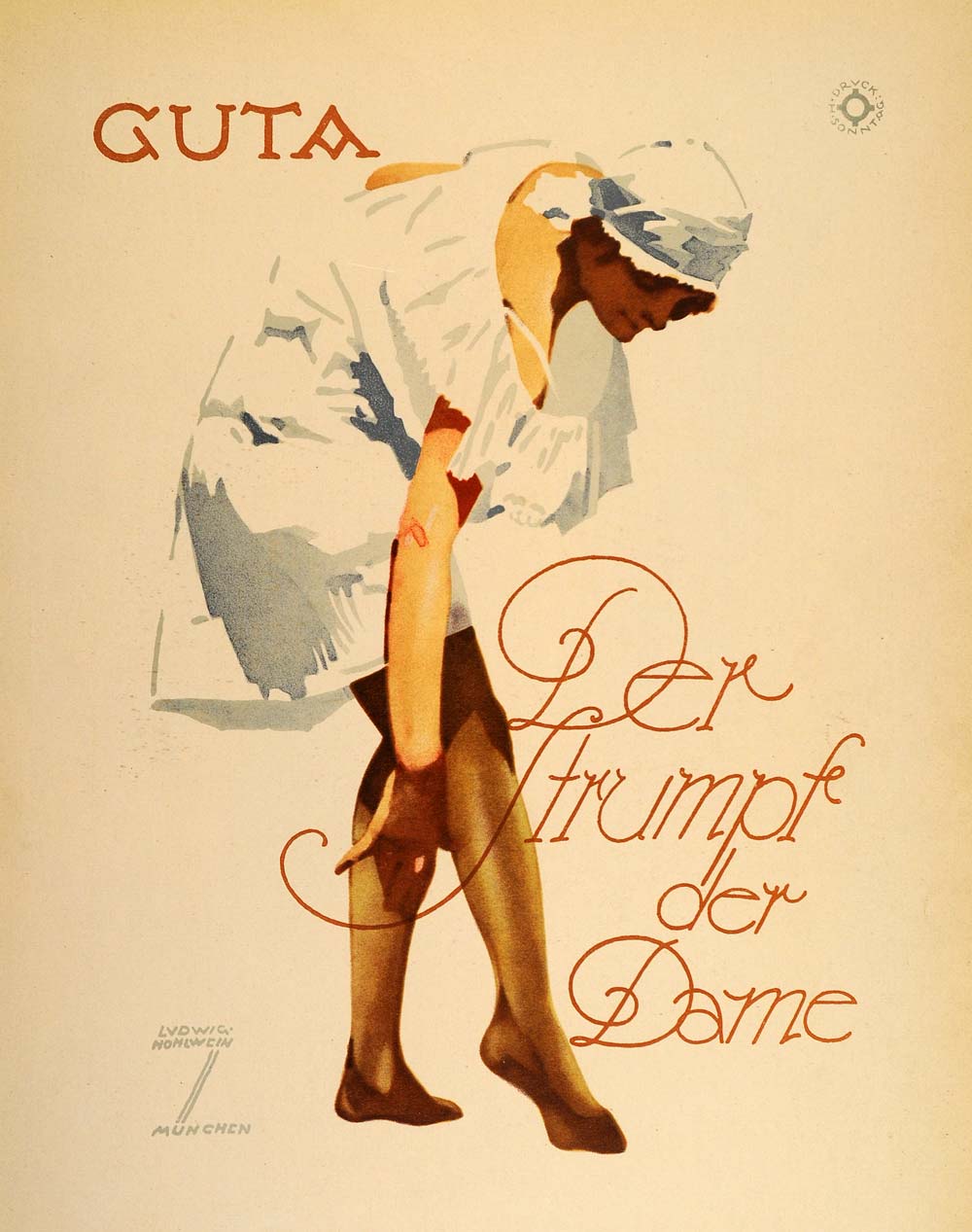 1926 Lithograph Hohlwein Guta Nylon Stockings Strumpf Legs German Poster Art Ad