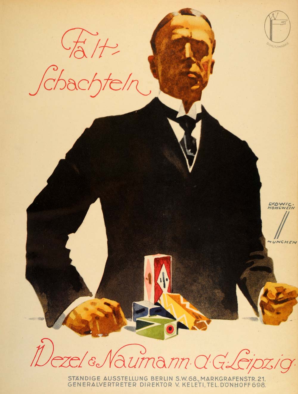 1926 Lithograph Hohlwein Wezel & Naumann Boxes Falt Schachteln German Poster Ad