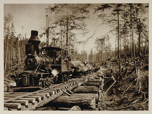 1926 Logging Train Vancouver Island B.C. Photogravure - ORIGINAL CANADA