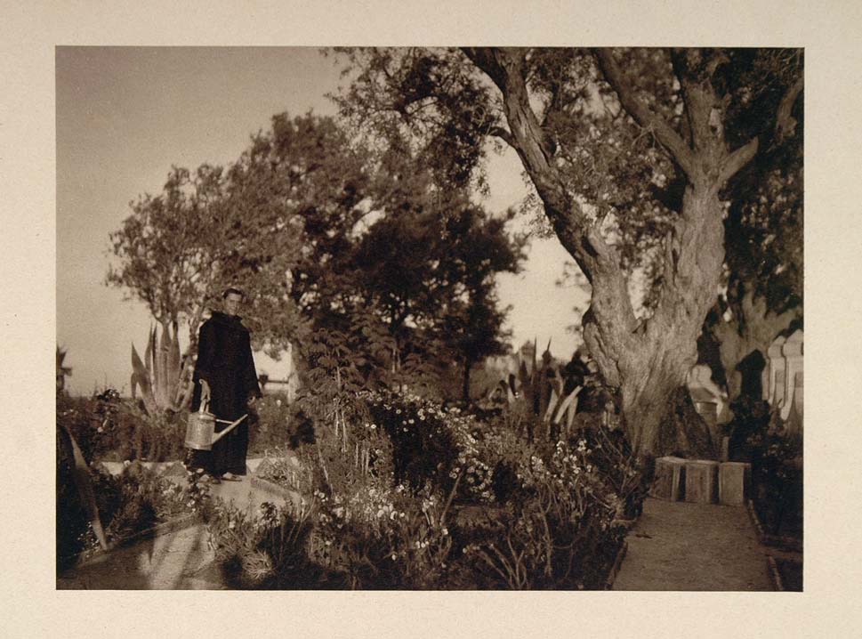 1926 Monastery Garden Monk Mount Carmel Israel Grober - ORIGINAL PS1