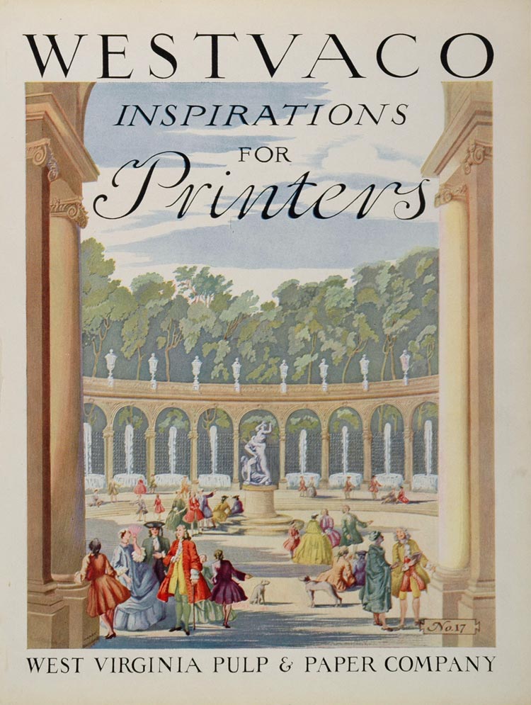 Period Paper has obtained an unusual and scarce collection of printers' samples of vintage art and illustration advertising art from 1926. These splendid images are in very good condition and would look magnificent framed. The collection was published by The West Virginia Paper Company or Westvaco which was was established in 1888 by William Luke along the Potomac River in what is now known as Luke, Maryland. In January 2002 Westvaco merged with the Mead Corporation to form MeadWestvaco.