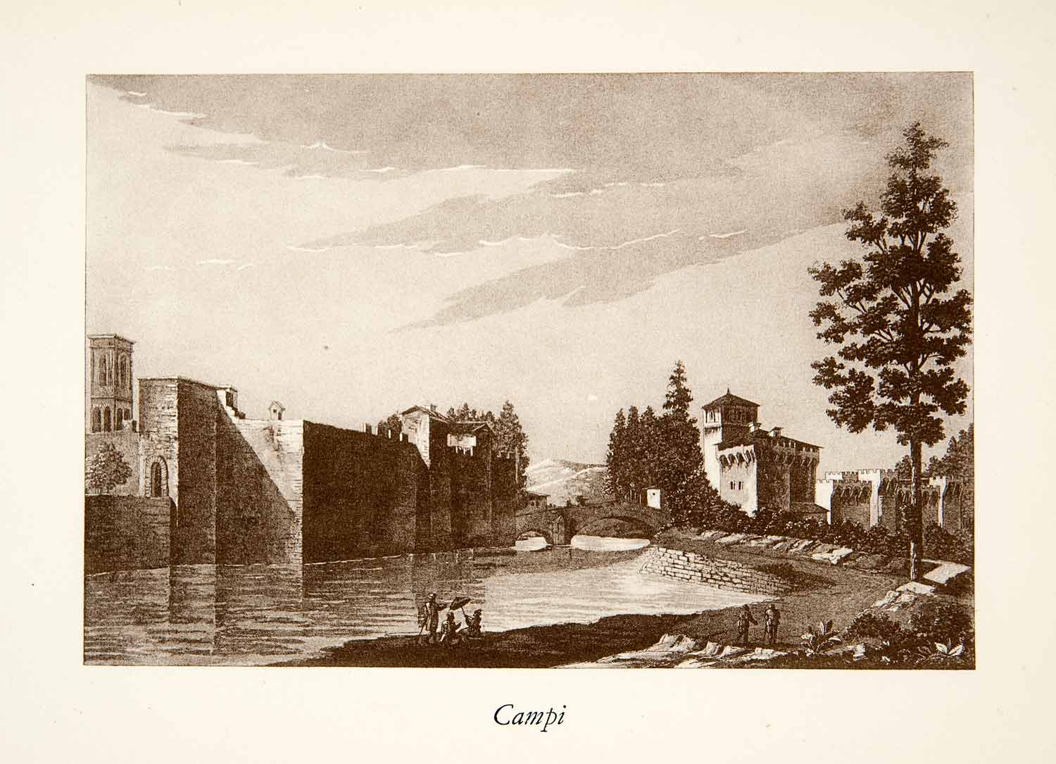 1926 Photogravure Campi Italia Italy River Bridge Wall Fortress Castle XGCB6