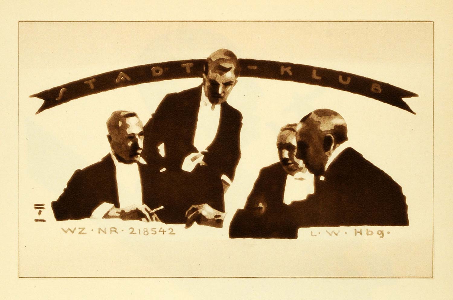 1926 Photogravure Ludwig Hohlwein Cigar Packaging Stadt-Klub Men Smoking Art