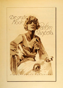 This is an original 1926 photogravure of an advertising poster by Ludwig Hohlwein for perfume from F. Wolff & Sohn, Karlsruhe, Germany. (Please note that there is printing on the reverse.)