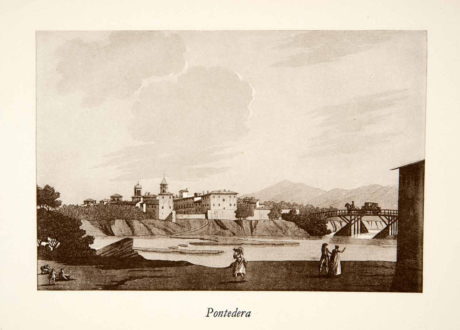1926 Photogravure Pontedera Tuscany Italy River Era Arno Bridge Banks XGCB6