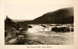 This is an original 1926 black and white photogravure of the Third Falls on the Grey River which is located on the south coast of the province of Newfoundland and Labrador in Canada.
