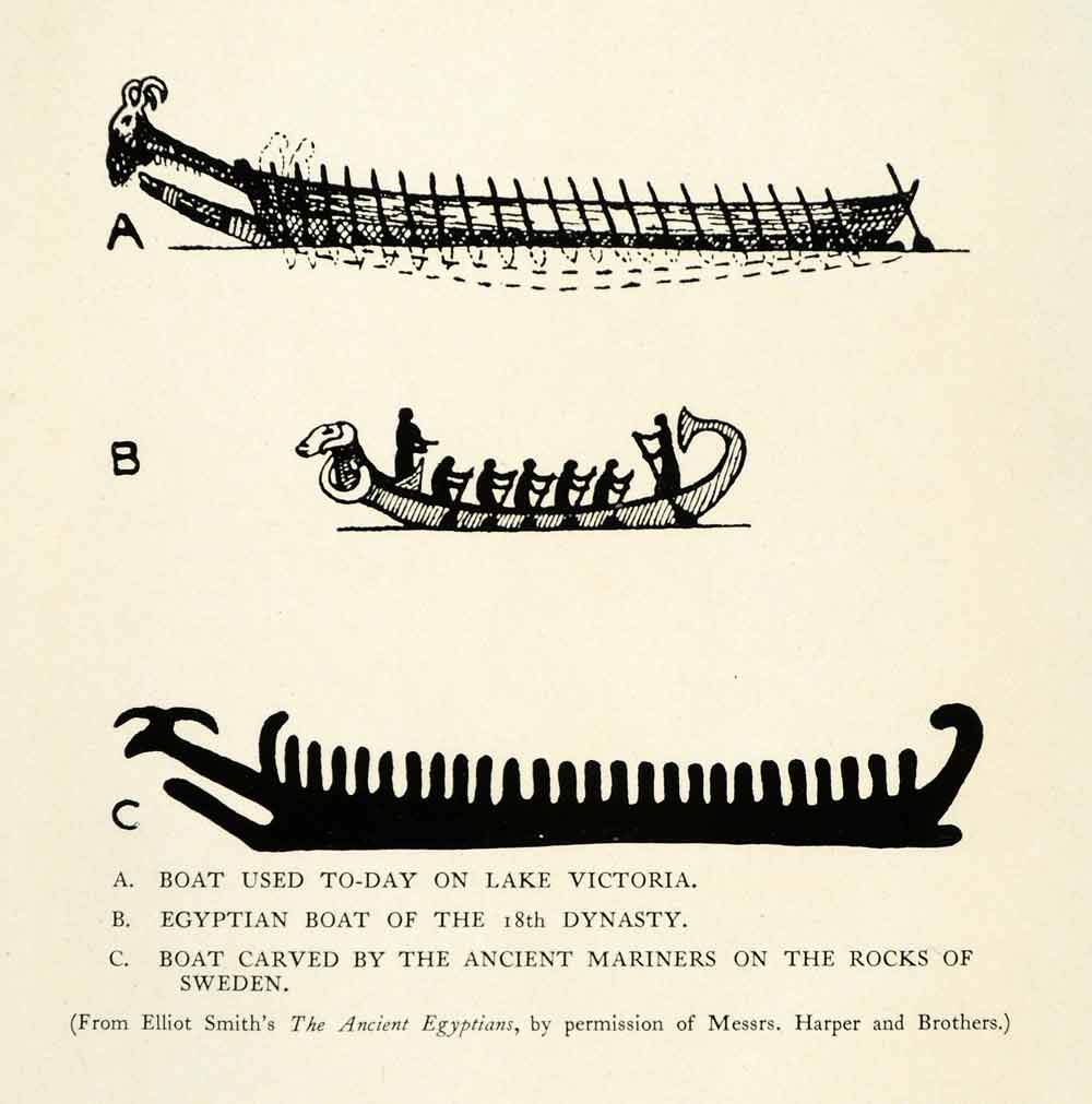 This is an original 1926 halftone print of a progression of boats showing the theorized influence of Western European mariners of antiquity on sailing vessels all the way to Egypt.