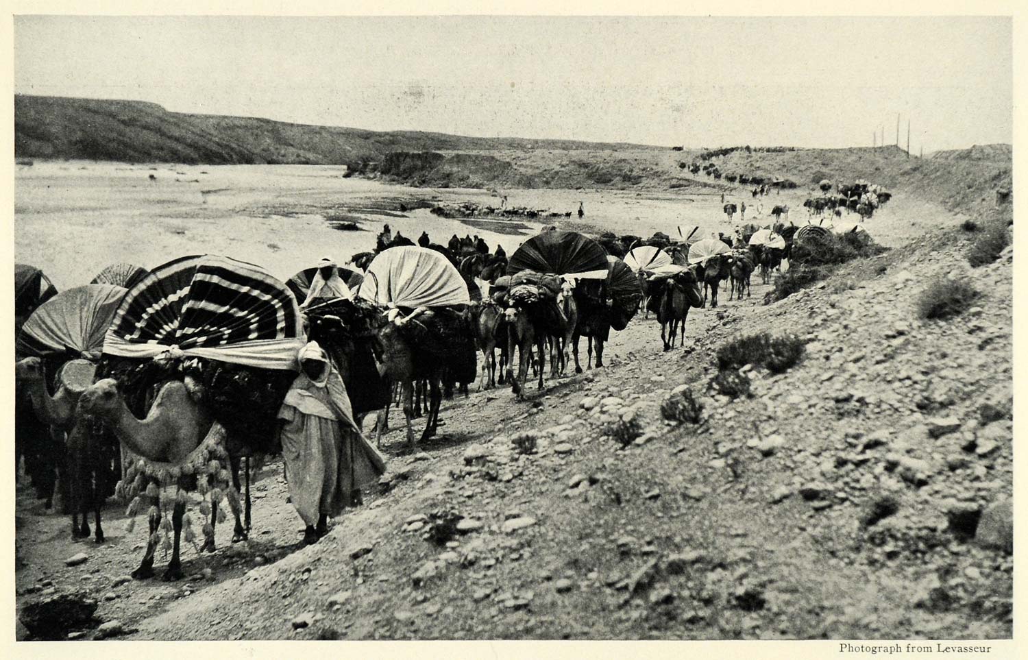 This is an original 1926 halftone print of a caravan in the Algerian Sahara. Photography by Levasseur.