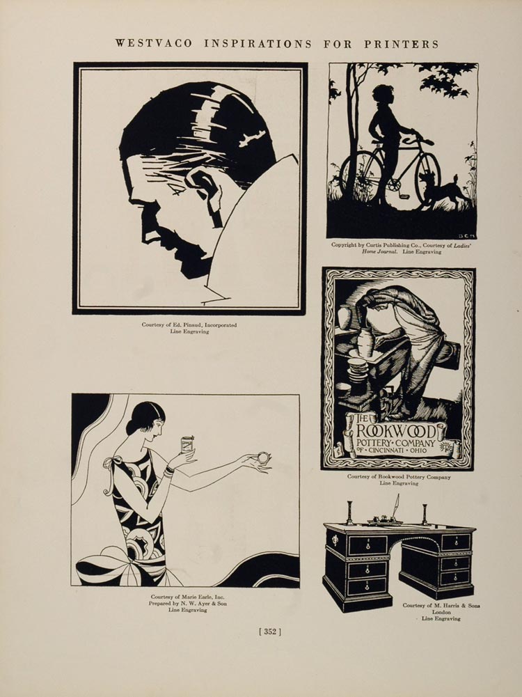 Period Paper has obtained an unusual and scarce collection of printers' samples of vintage art and illustration advertising art from 1926. These splendid images are in very good condition and would look magnificent framed. The collection was published by The West Virginia Paper Company or Westvaco which was was established in 1888 by William Luke along the Potomac River in what is now known as Luke, Maryland. In January 2002 Westvaco merged with the Mead Corporation to form MeadWestvaco.