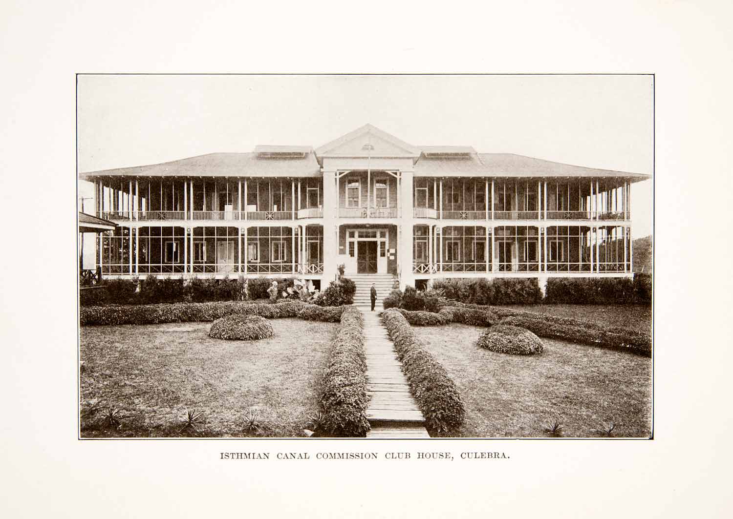 This is an original 1926 black and white halftone print of the Isthmian Canal Commission Club House in Culebra, Panama.