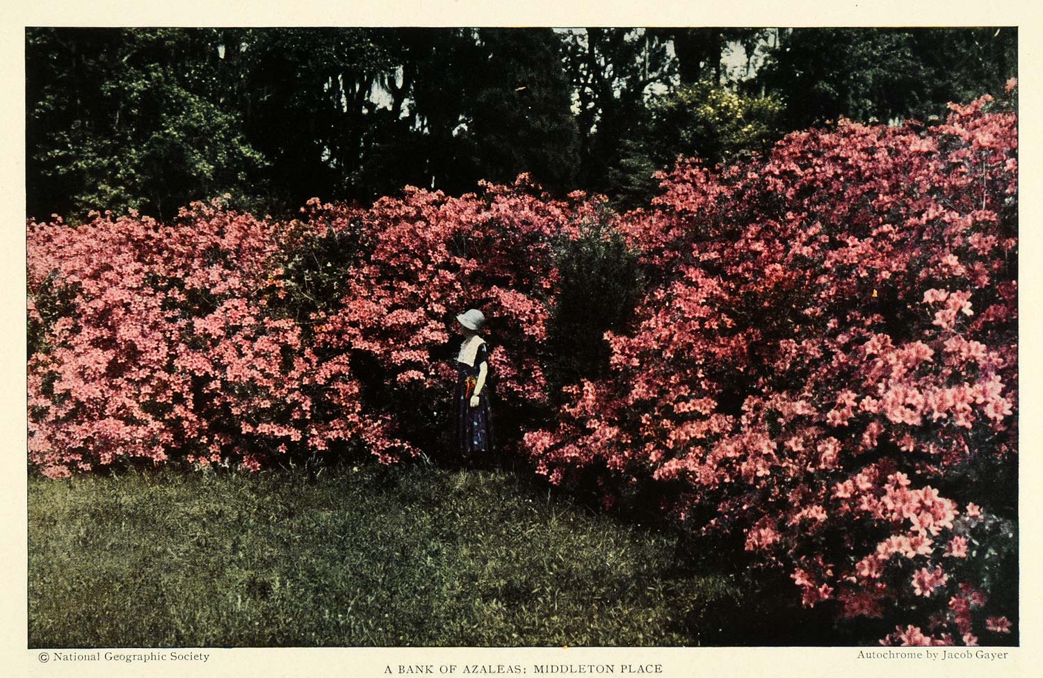 This is an original 1926 color print of a bank of Azaleas at Middleton Place in South Carolina. Photography courtesy of Jacob Gayer.
