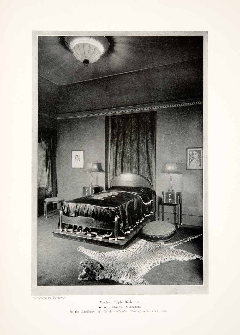 This is an original 1926 black and white halftone print of a "modern" style bedroom from the W. & J. Sloane Decorators.