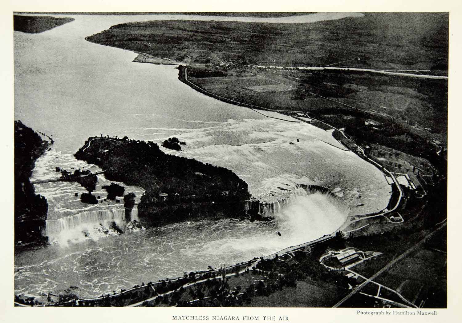 This is an original 1926 black and white halftone print of an aerial view of Niagara Falls in New York State.