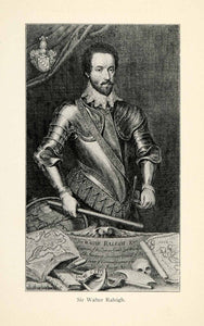 This is an original 1926 halftone print of English explorer Sir Walter Raleigh, who was a favorite of Queen Elizabeth I. He is noted for popularizing tobacco in the United Kingdom.