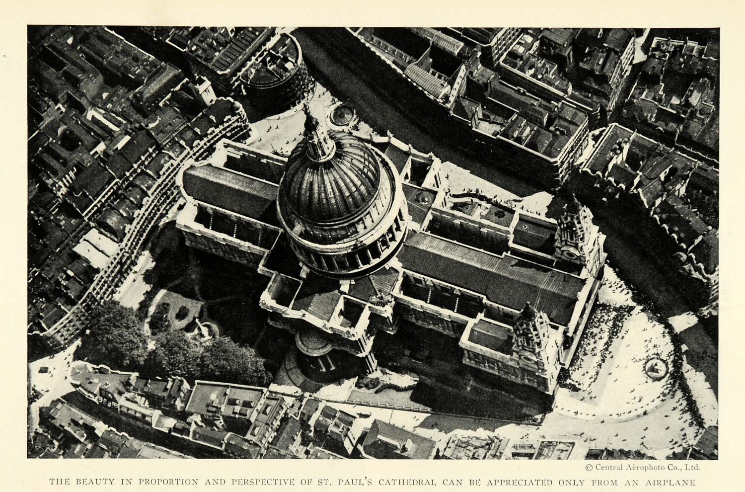 This is an original 1926 halftone print of an aerial view of St. Paul's Cathedral in London, England.