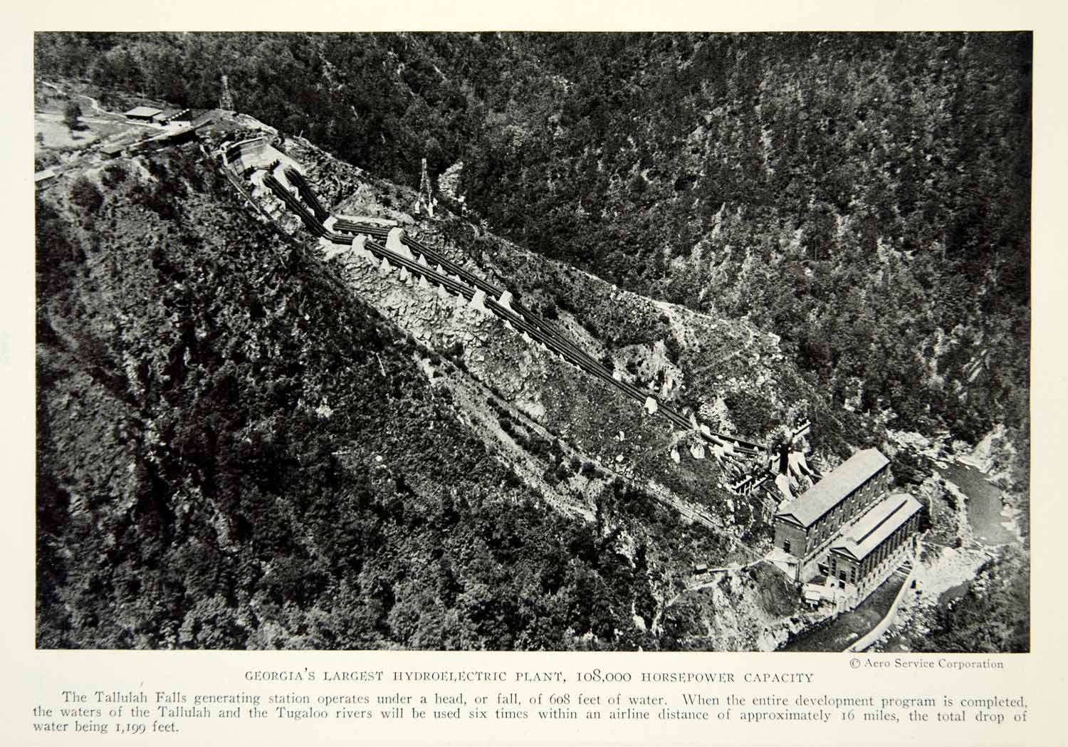 This is an original 1926 black and white halftone print of the Tallulah Falls generating station in Georgia.