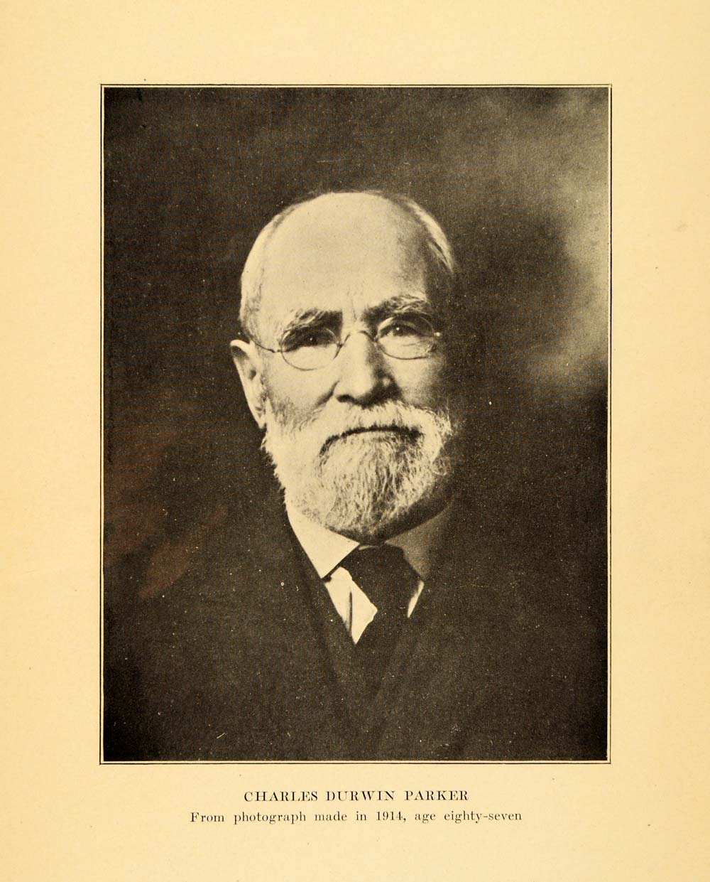This is an original 1926 halftone print featuring an image of Charles Durwin Parker, a Wisconsin politician, Lieutenant Governor of Wisconsin, and member of the Wisconsin Board of Control; from a photograph taken in 1914 at the age of eighty seven.