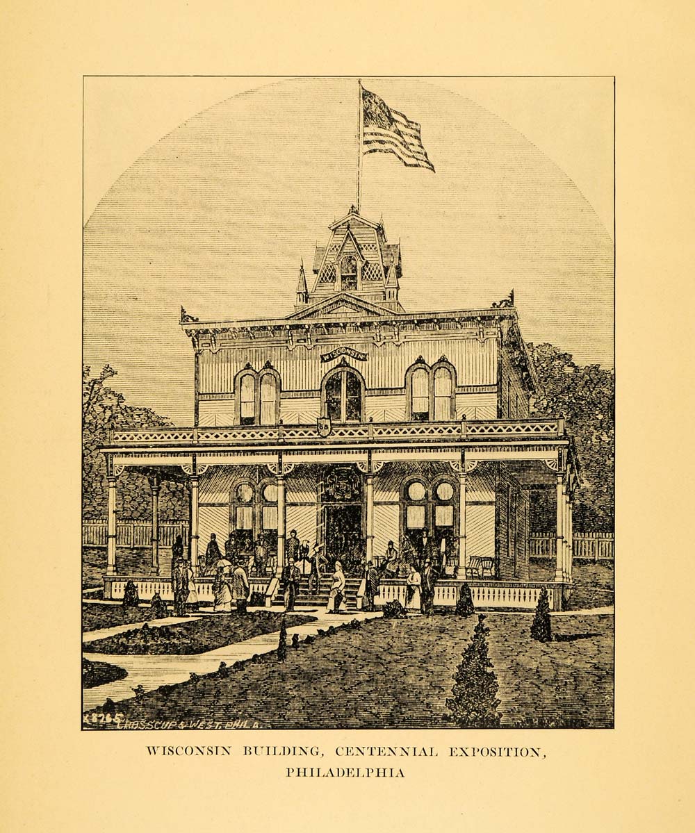 This is an original 1926 halftone print featuring an illustration of the Wisconsin Building at the Sesqui-Centennial Exposition being held at Philadelphia in 1876.