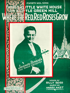 1926 Sheet Music Where the Red Red Roses Grow Jacques Renard Lido Orchestra ZSM3