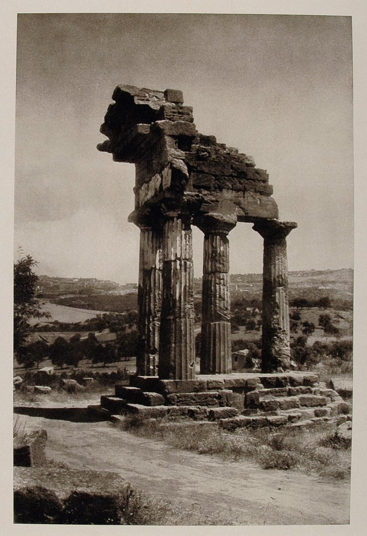 1926 Temple Castor Pollux Girgenti Agrigento Sicily - ORIGINAL PHOTOGRAVURE IS1