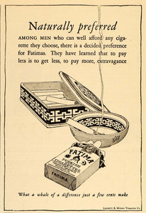 This is an original 1926 black and white print ad for Fatima Turkish Blend Cigarettes.