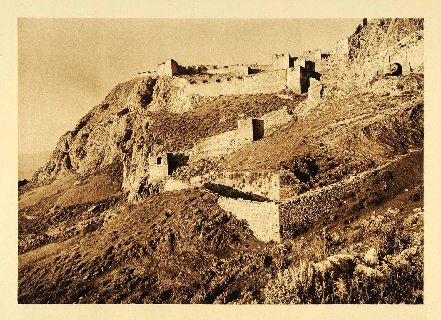 1926 Walled Gates Acrocorinth Castle Greek Ancient Ruin - ORIGINAL GRC3