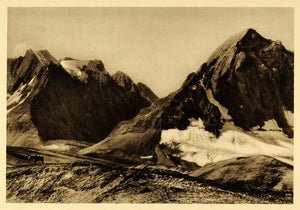 This is an original 1926 photogravure of Wolverine Pass with Mt. Gray and Mt. Drysdale in Kootenay National Park in the Province of British Columbia (Columbie Britannique, Britisch Columbien, Columbia Britannica), Canada. (Please note that there is printing on the reverse.)