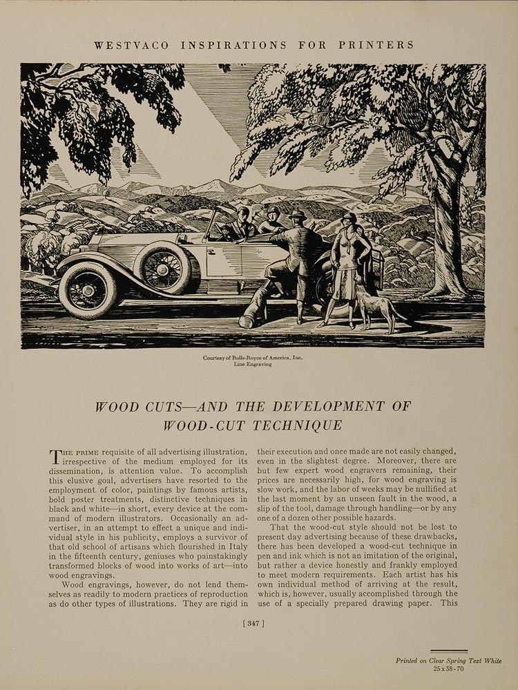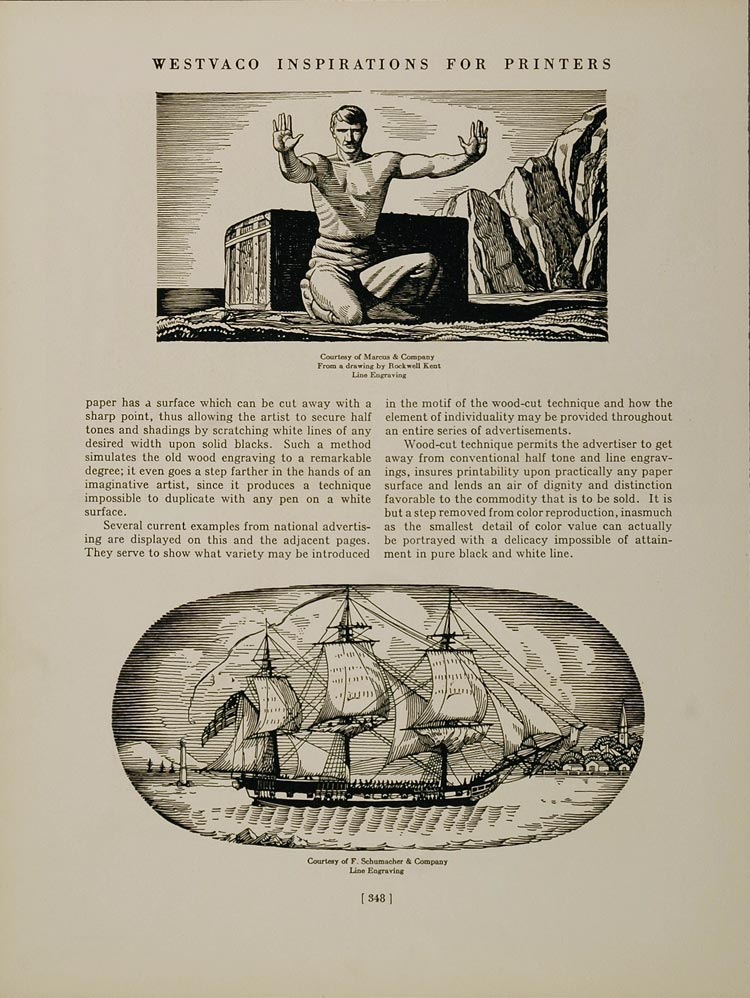 Period Paper has obtained an unusual and scarce collection of printers' samples of vintage art and illustration advertising art from 1926. These splendid images are in very good condition and would look magnificent framed. The collection was published by The West Virginia Paper Company or Westvaco which was was established in 1888 by William Luke along the Potomac River in what is now known as Luke, Maryland. In January 2002 Westvaco merged with the Mead Corporation to form MeadWestvaco.