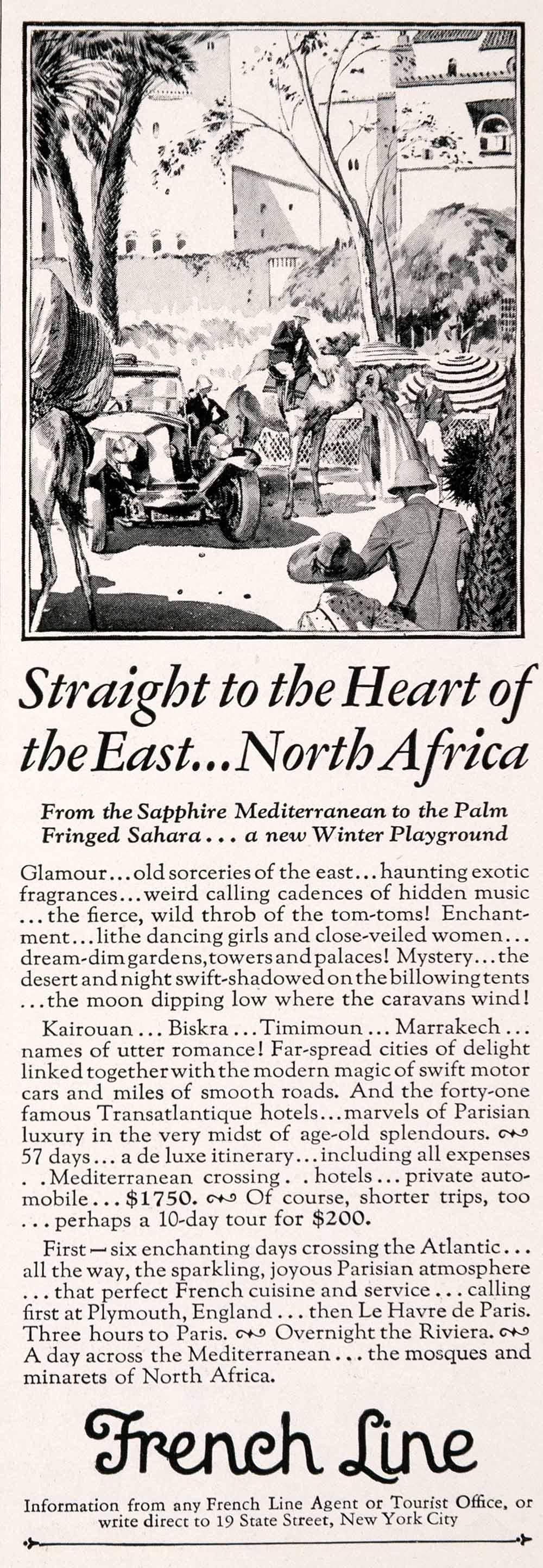 Keywords specific to this image: Vintage Advertising, travel, traveling, tourism, Biskra, Timimoun, Marrakech, pricing, French, Plymouth, England