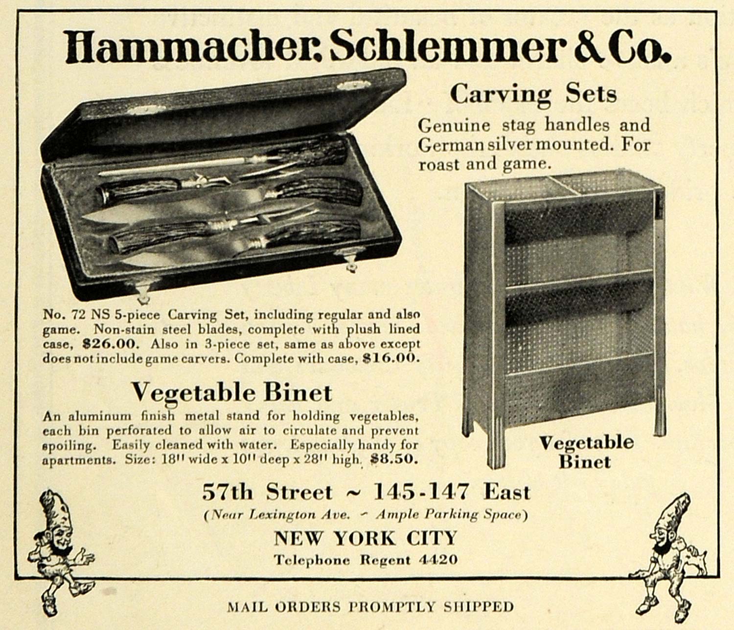 This is an original 1927 black and white print ad for housewares by Hammacher, Schlemmer and Company of New York City.