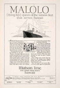 This is an original 1927 black and white print ad for the Matson Navigation Company. The advertisement depicts the