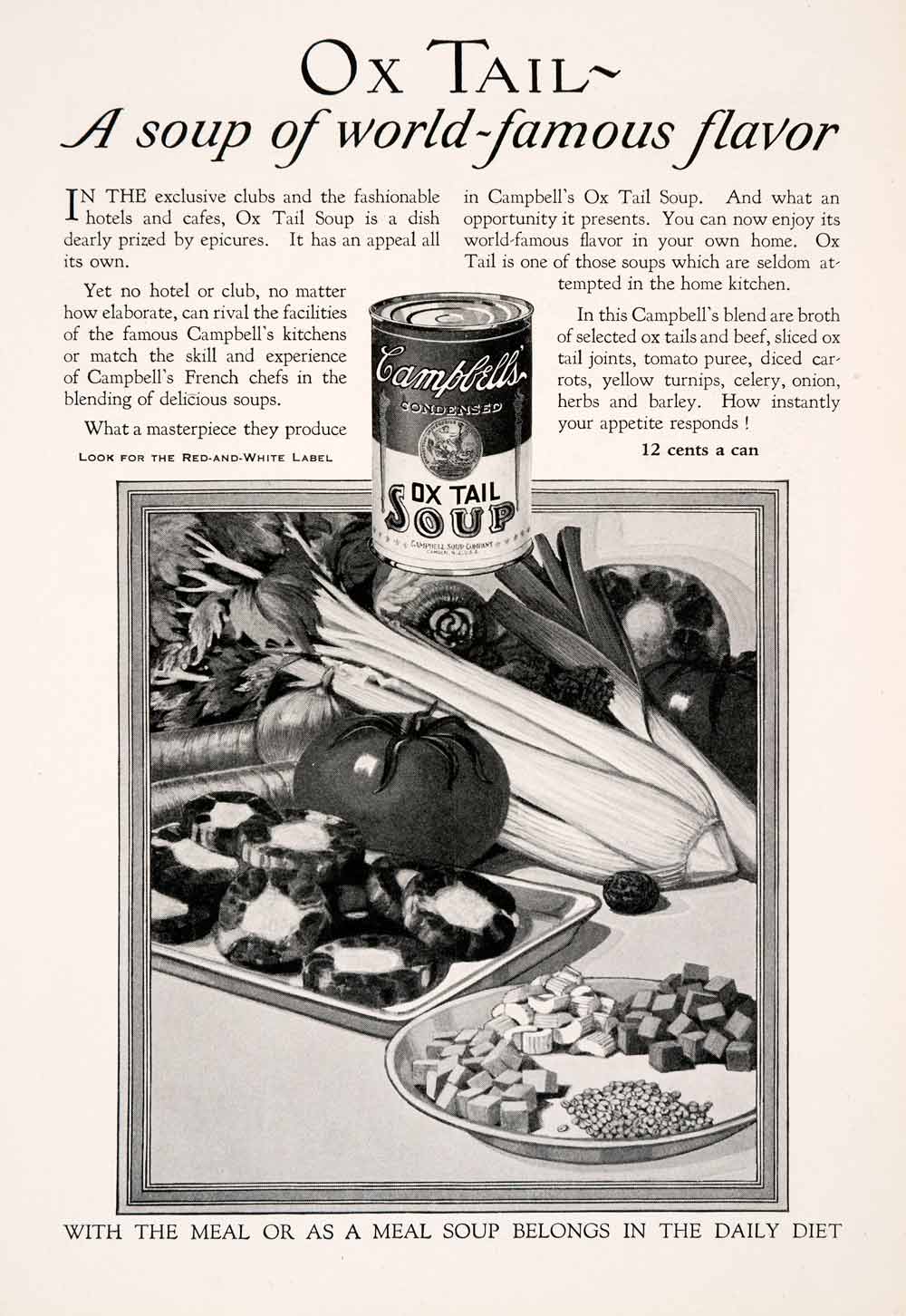 1927 Ad Ox Tail Soup Campbell's Dinner Condensed Vegetables Celery Tomato NGM3