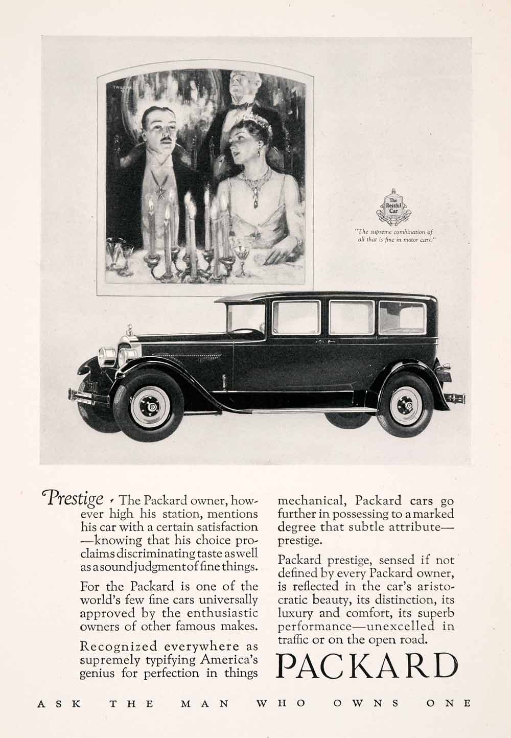 This is an original 1927 black and white print ad for the Packard automobile.