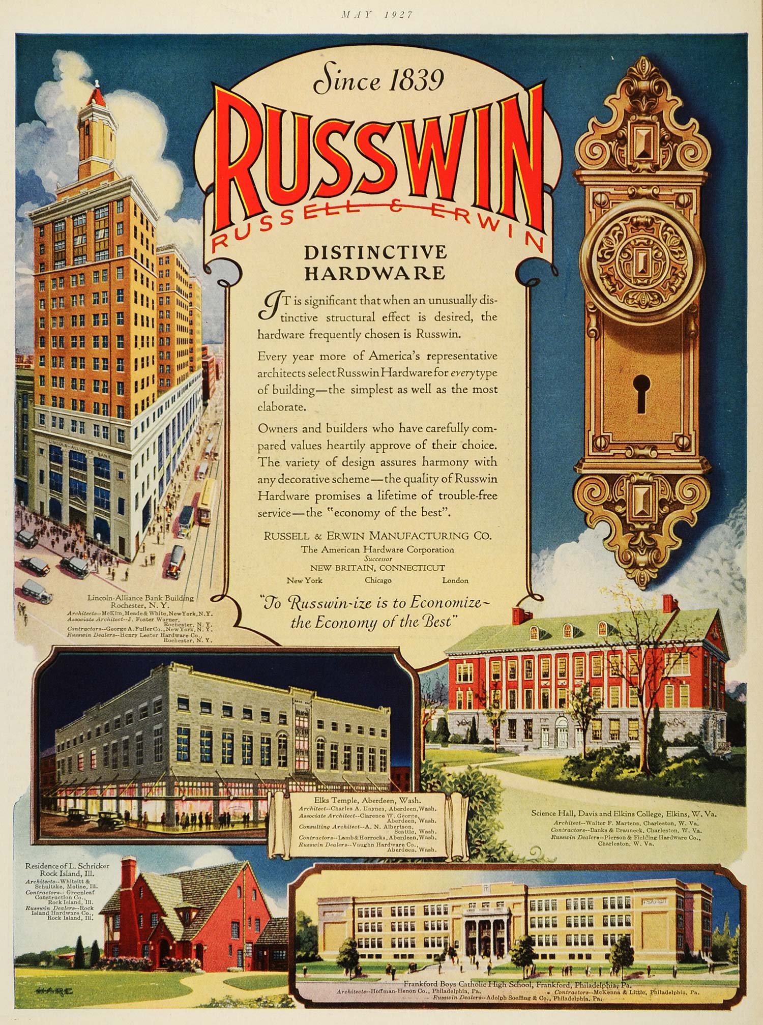 1927 Ad Russwin Russell Erwin Lincoln-Alliance Hardware Elks Temple Aberdeen HB3