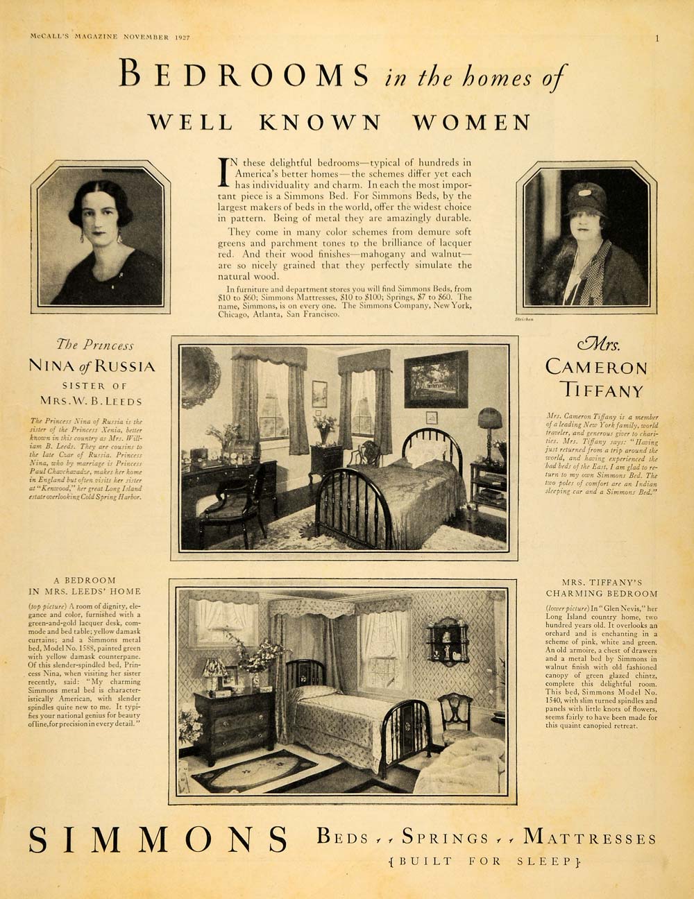 Keywords specific to this image: Vintage Advertising, furniture, bedding, interior design, home decoration