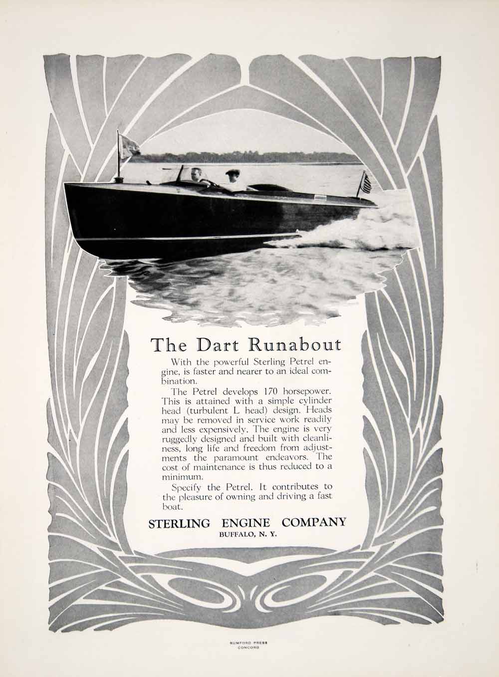 This is an original 1927 black and white print ad for the Petrel 170 hp marine motor that was made and sold by the Sterling Engine Company of Buffalo, New York (NY) during the Roaring Twenties era.