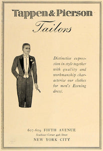 This is an original 1927 black and white print ad for Tappen & Pierson Tailors located at 607-609 Fifth Avenue, New York City, New York.