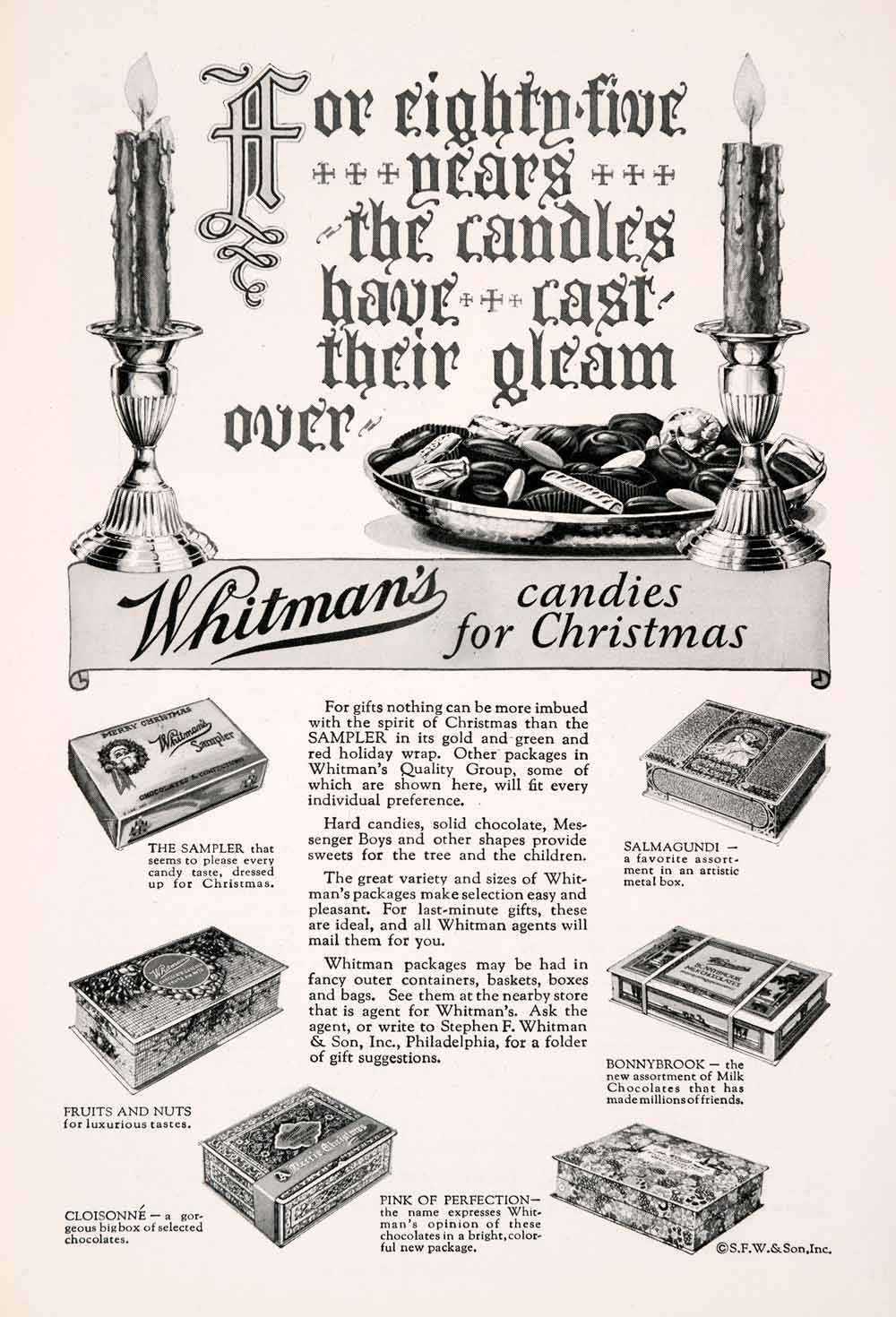 1927 Ad Whitman's Chocolate Candy Christmas Box Candle Sampler Salmagundi NGM3