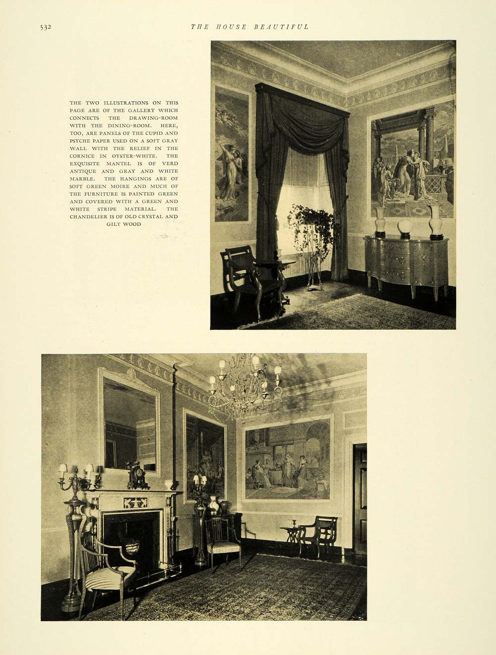 Keywords specific to this image: Decorative, Interior Decoration, Interior Design, Curving Stairways, Decorative, Drapes, Draperies, Cupid, Psyche, Gilt Wood