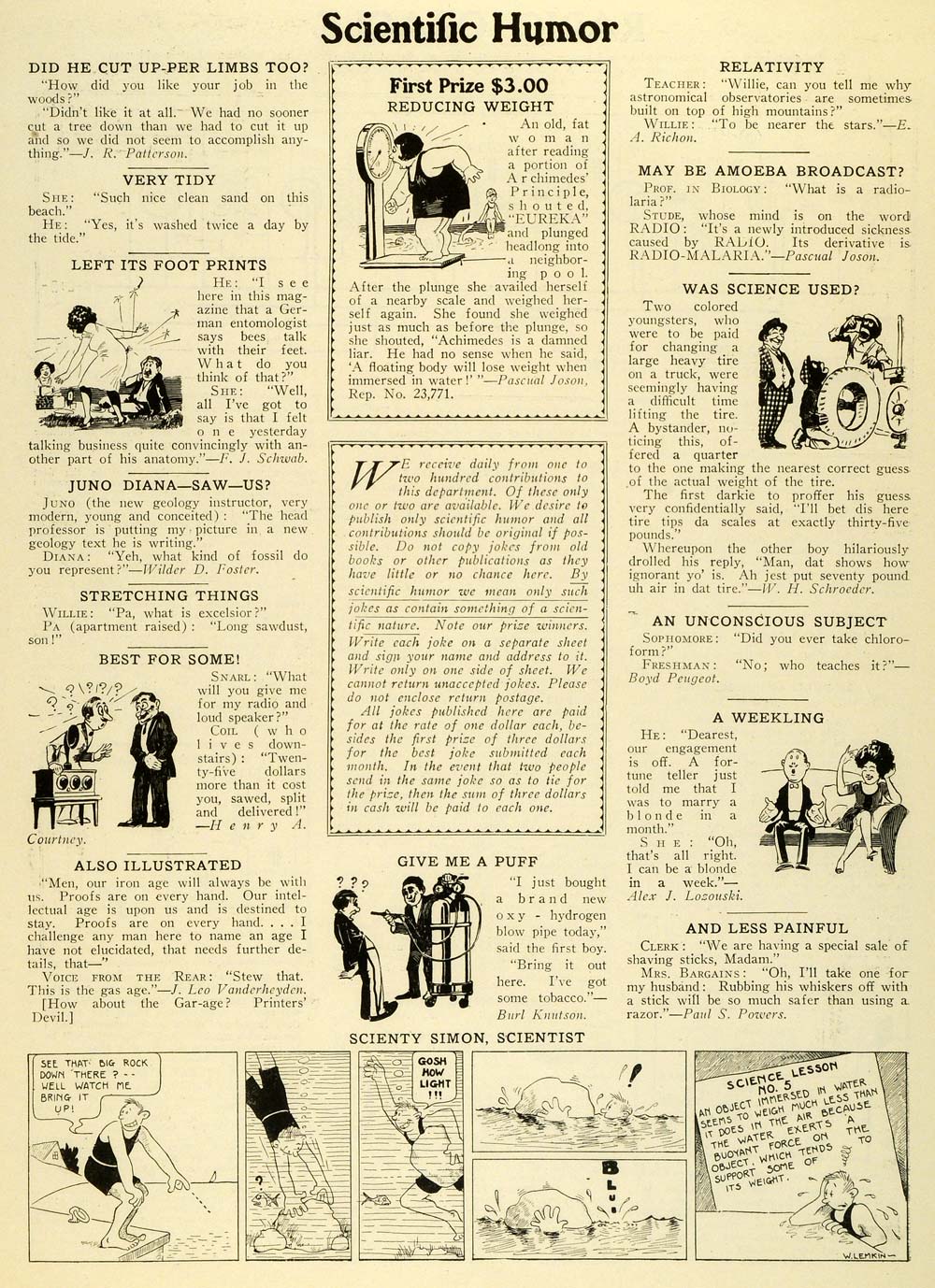 1927 Article Scientific Humor Jokes Relativity Amoeba Scienty Simon Marriage SI1