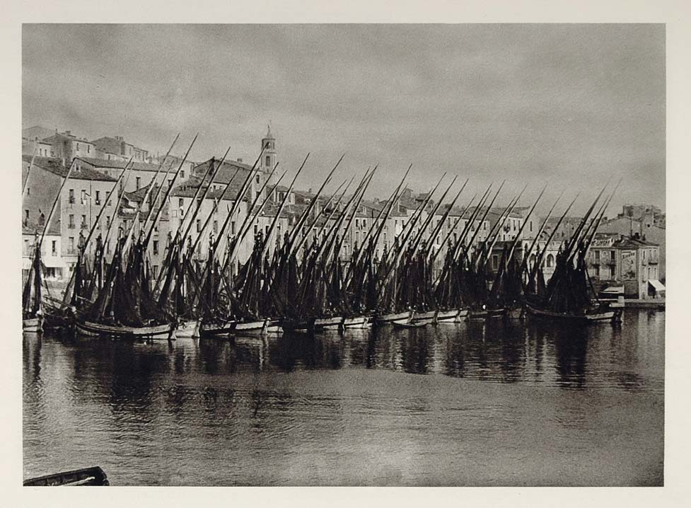 1927 Boats Harbor Port Cette Sete France Mediterranean - ORIGINAL PHOTOGRAVURE