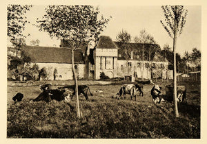 1927 Chartreuse du Liget Monastery Cows Field France - ORIGINAL PHOTOGRAVURE FR2